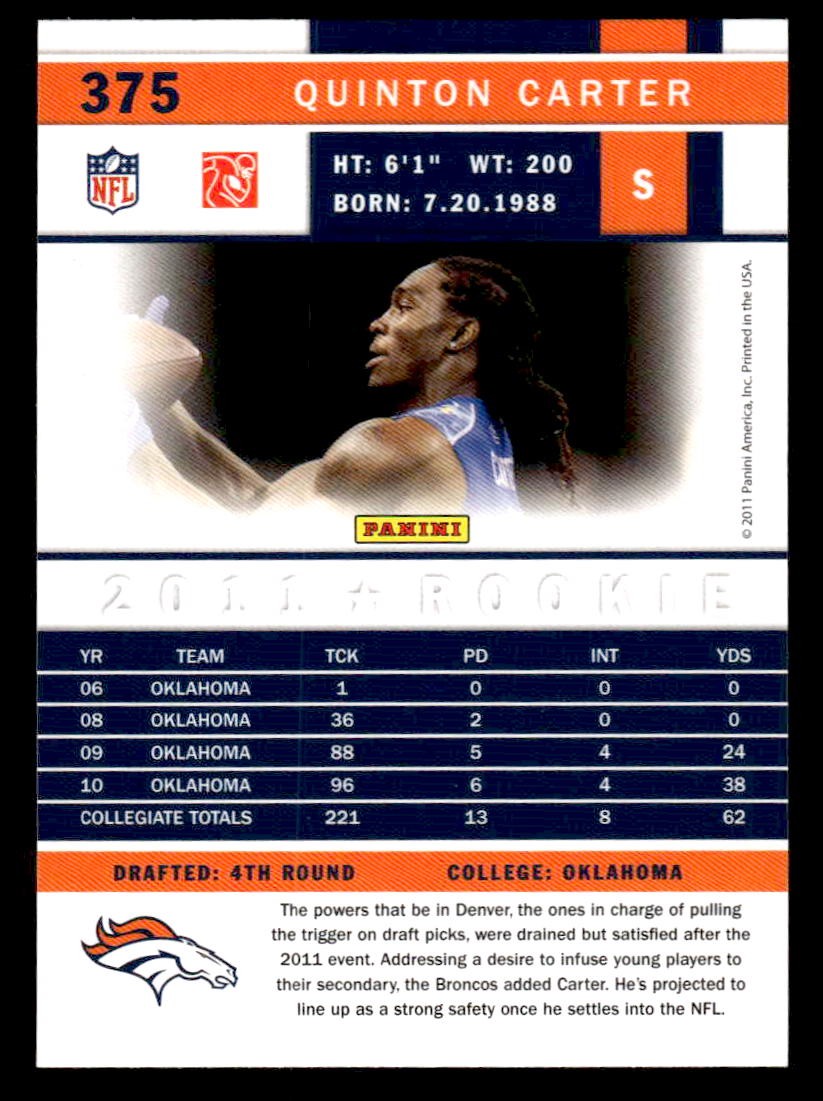 This is a nice example of a 2011 Score #375 Quinton Carter
