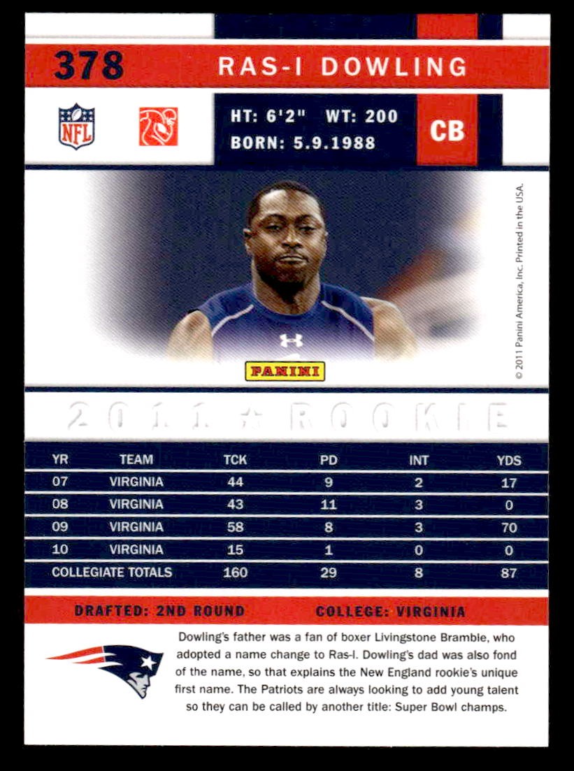 Ras-I Dowling played for the New England Patriots in 2011, and this card is a standout from the Score 2011 Score release. Whether you're chasing rookies, SSPs, or building a premium collection, this card delivers.