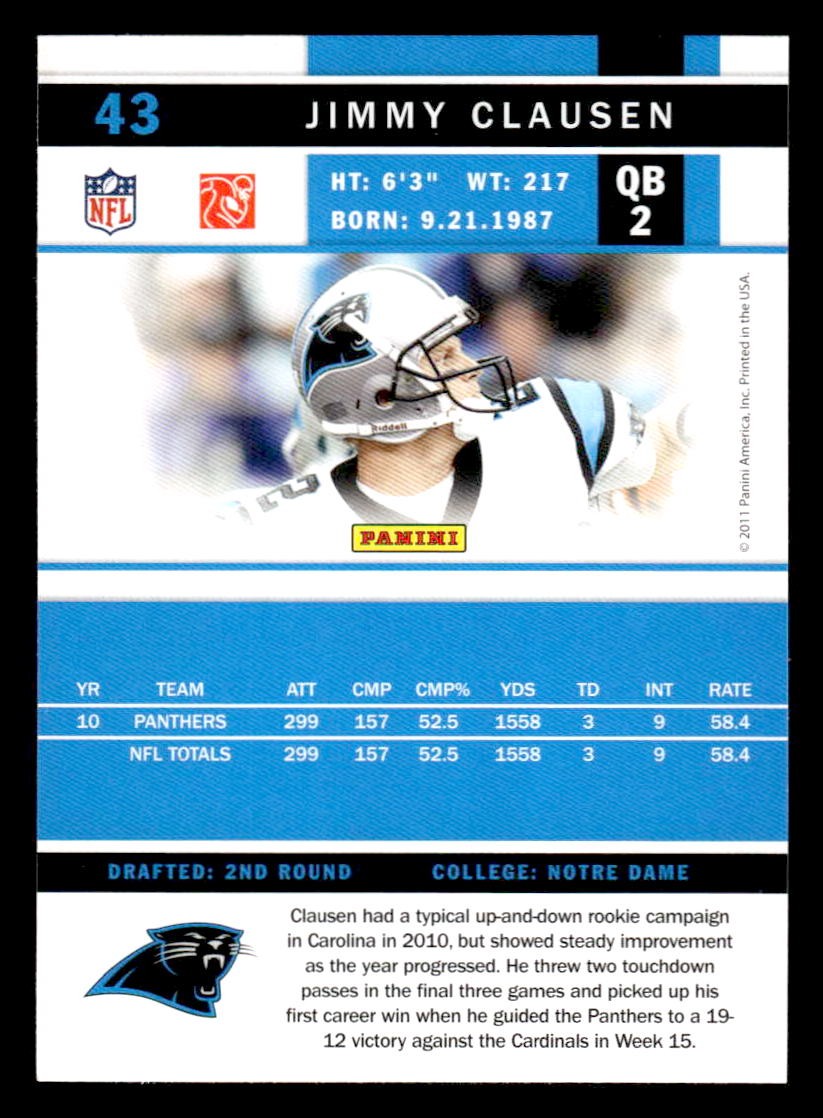 This is a sharp example of the 2011 Score #43 featuring Jimmy Clausen.