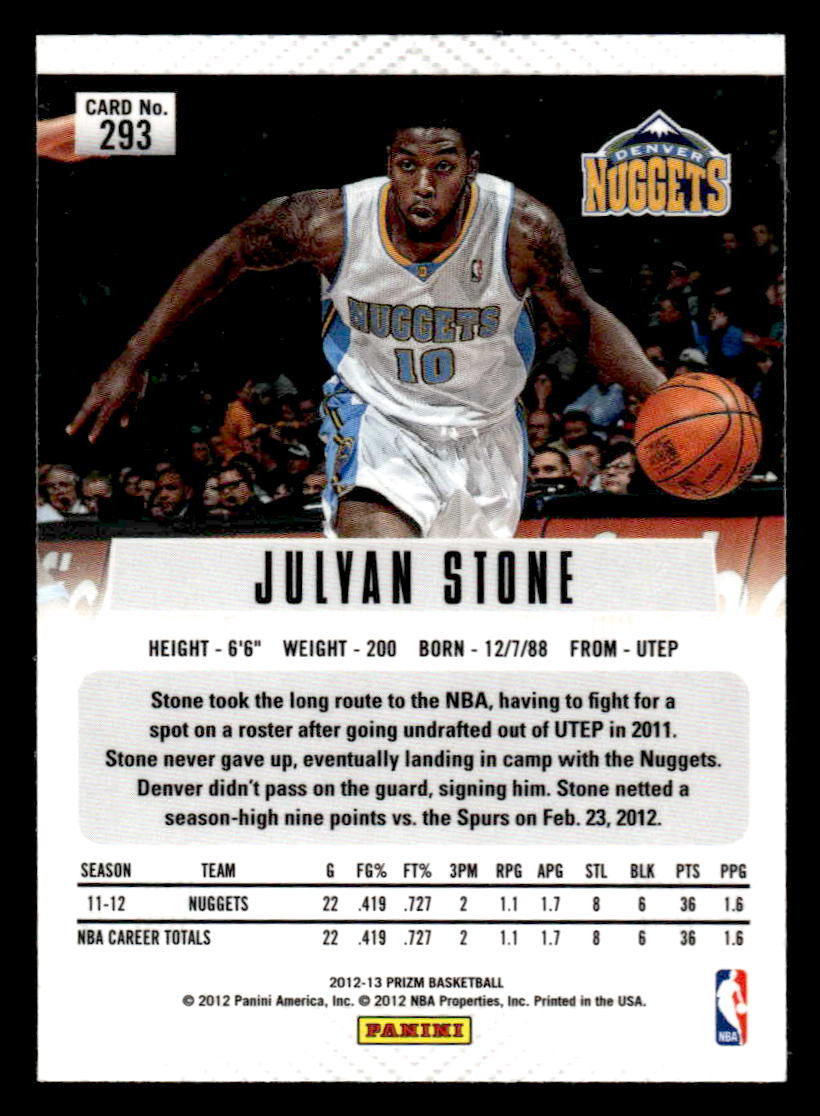 This is a nice example of a 2012-13 Panini Prizm #293 Julyan Stone