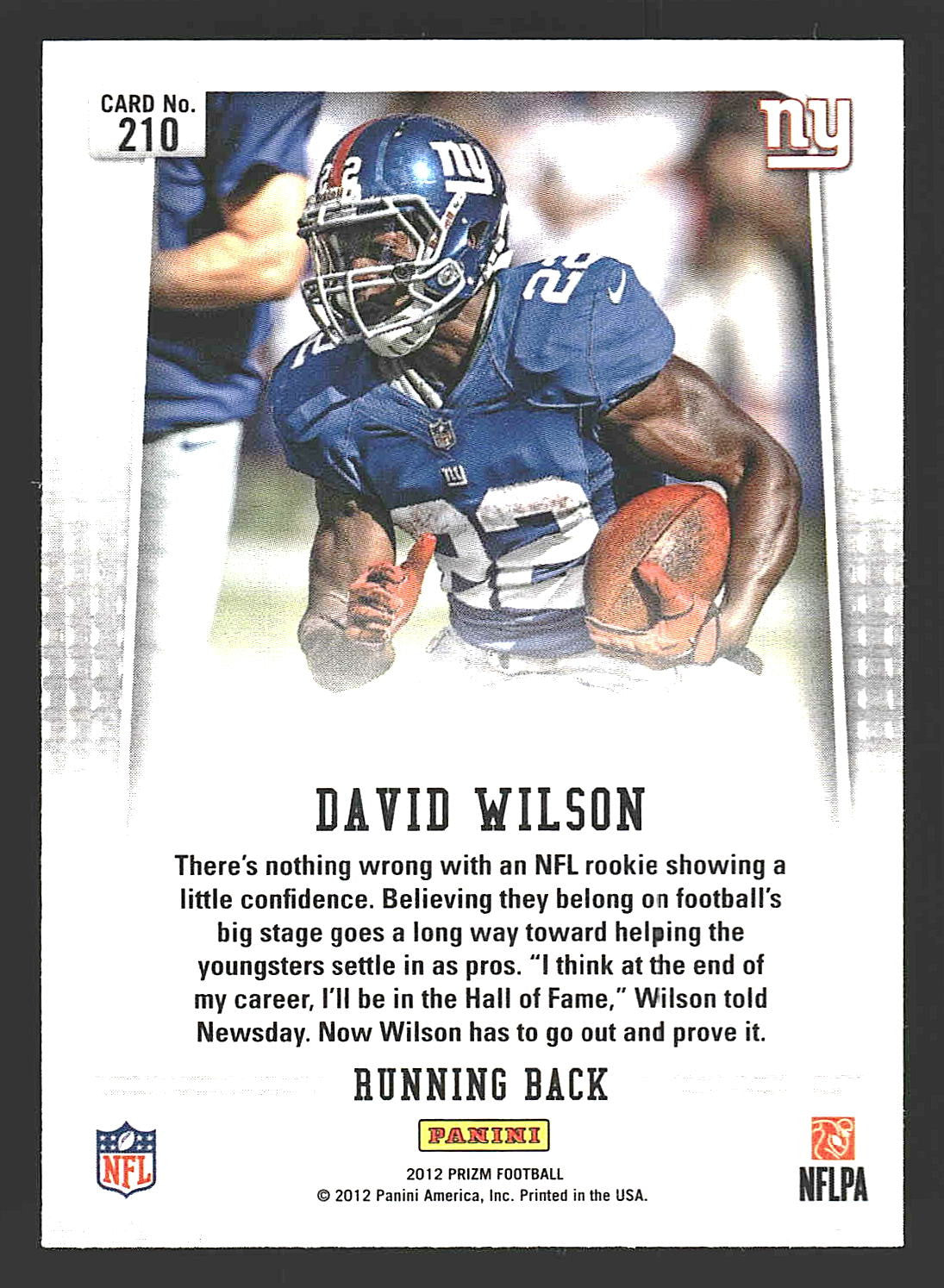 This is a nice example of a 2012 Panini Prizm #210 David Wilson