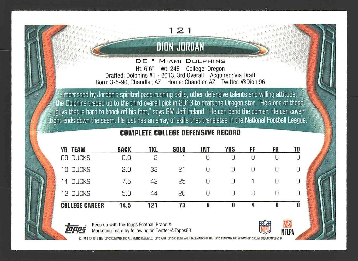 This is a nice example of a 2013 Topps Chrome #121 Dion Jordan