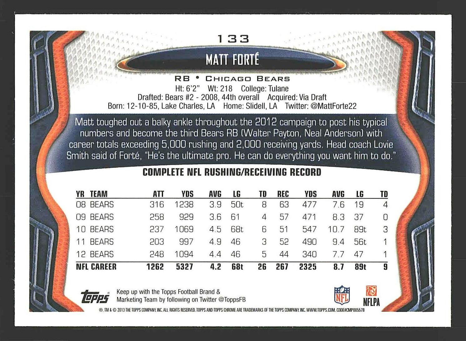 2013 Topps Chrome #133 Matt Forte