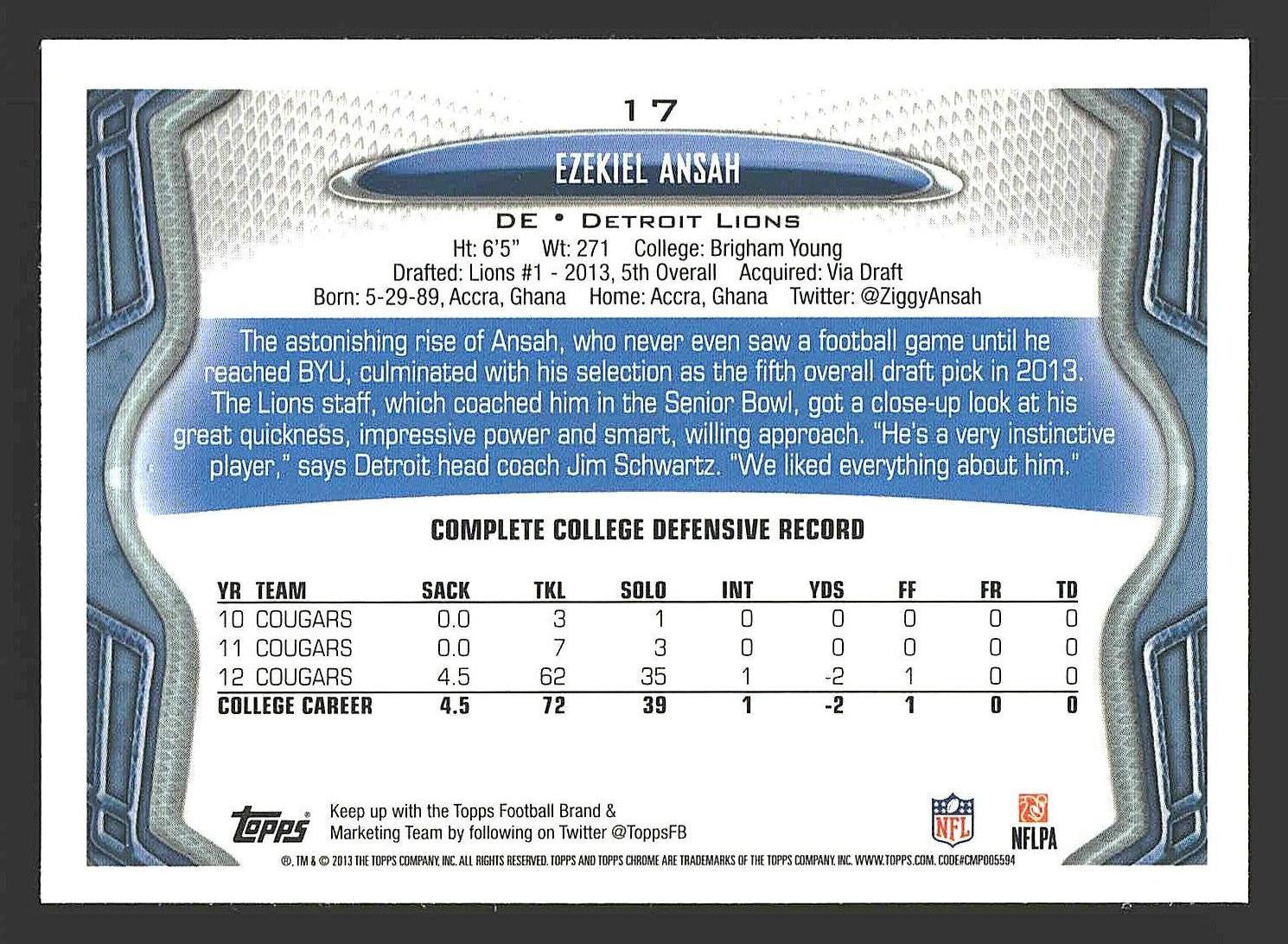This is a nice example of a 2013 Topps Chrome #17 Ezekiel Ansah