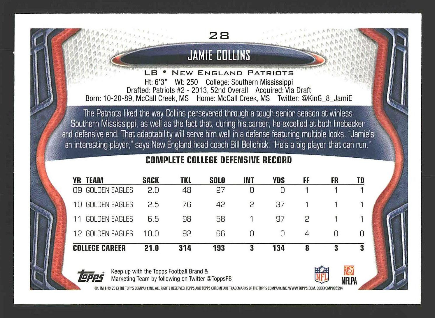 This is a nice example of a 2013 Topps Chrome #28 Jamie Collins