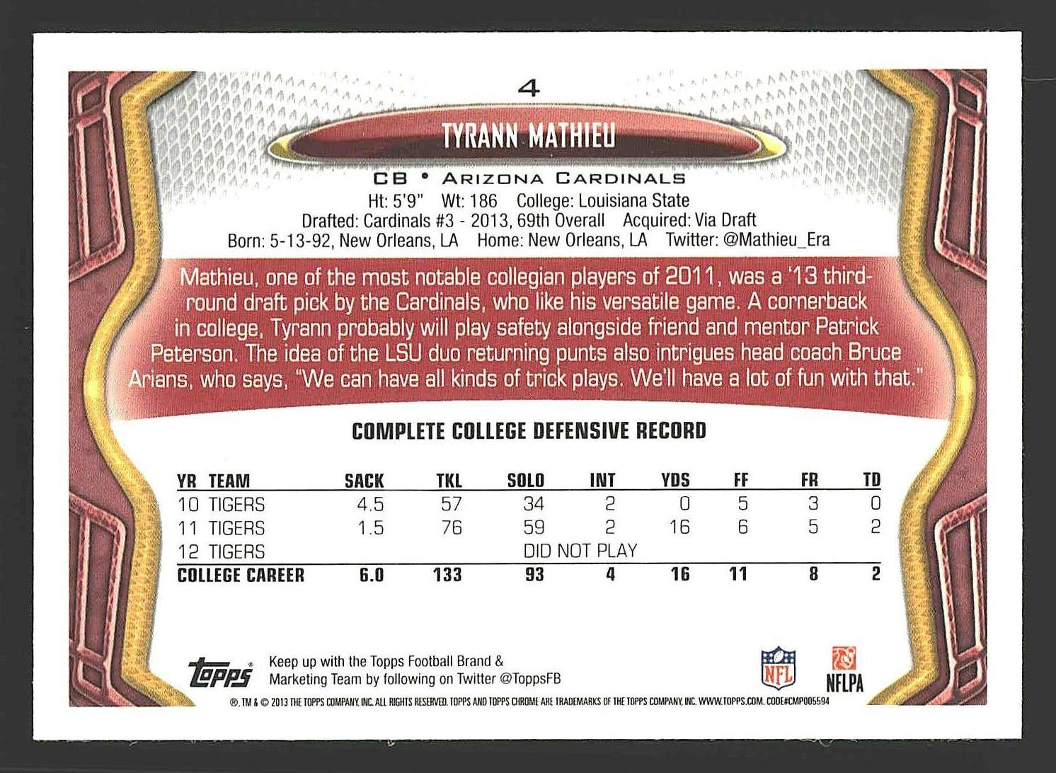 This is a nice example of a 2013 Topps Chrome #4 Tyrann Mathieu