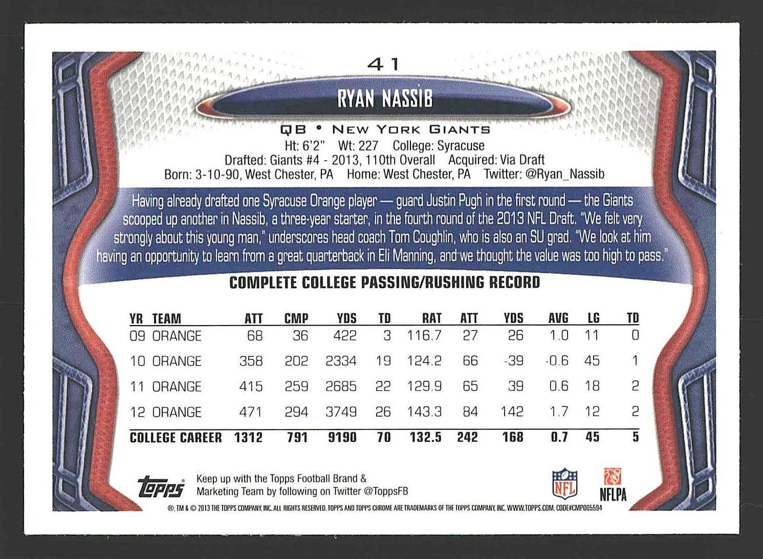 This is a nice example of a 2013 Topps Chrome #41 Ryan Nassib
