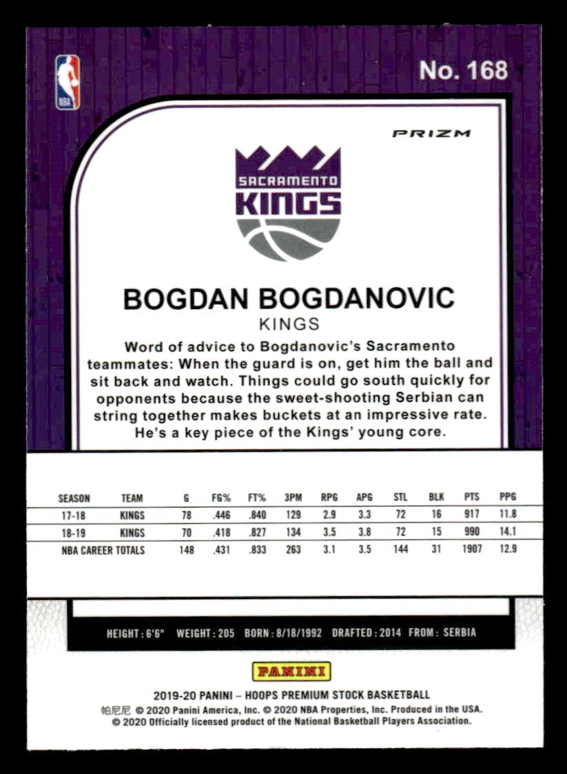 2019-20 Hoops Premium Stock #168 Bogdan Bogdanovic Prizms Silver Mojo