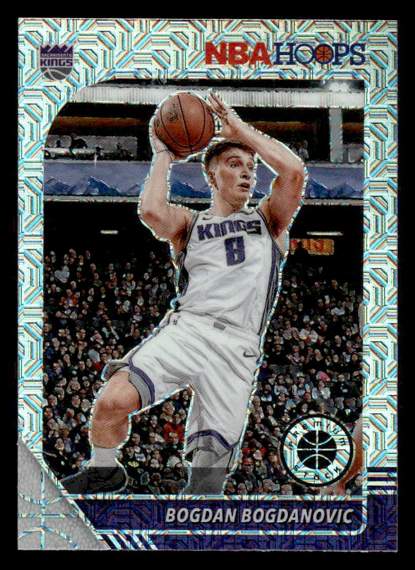 This is a nice example of a 2019-20 Hoops Premium Stock #168 Bogdan Bogdanovic Prizms Silver Mojo