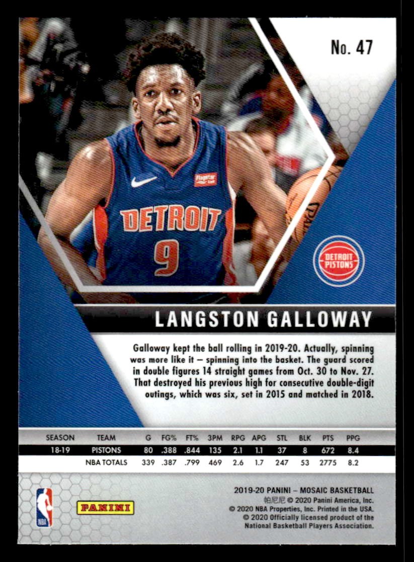 This is a nice example of a 2019-20 Panini Mosaic #47 Langston Galloway