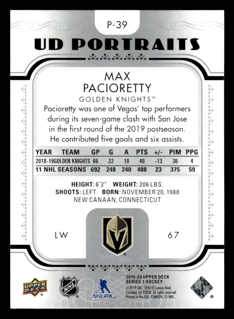 This is a nice example of a 2019-20 Upper Deck #P-82 Nikita Gusev UD Portraits