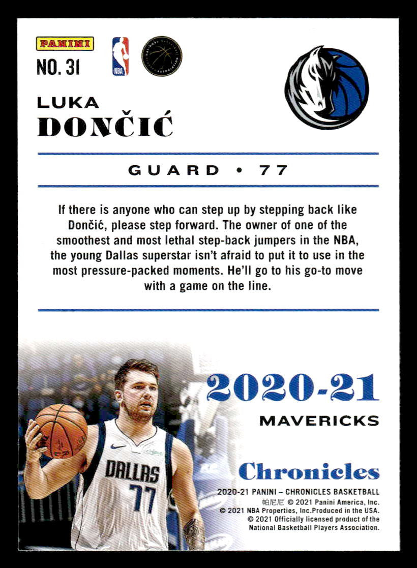 This is a nice example of a 2020-21 Panini Chronicles #31 Luka Doncic