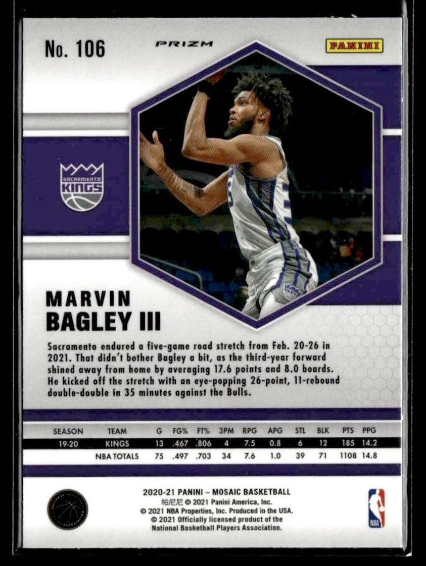 This is a nice example of a 2020-21 Panini Mosaic #106 Marvin Bagley III Mosaic Reactive Blue