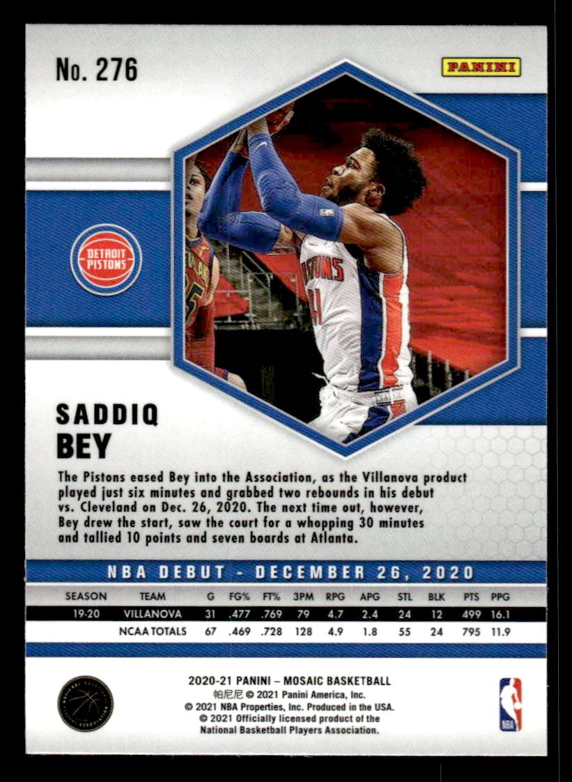This is a nice example of a 2020-21 Panini Mosaic #276 Saddiq Bey