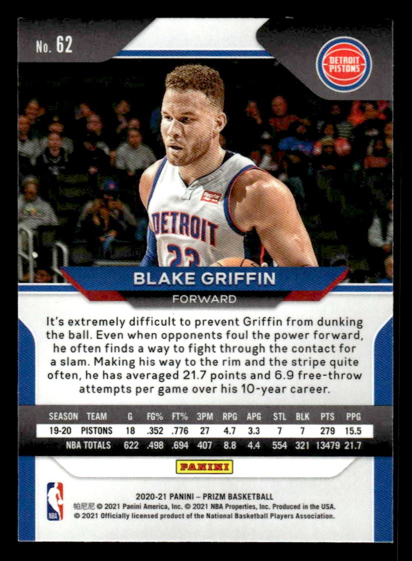 This is a nice example of a 2020-21 Panini Prizm #62 Blake Griffin