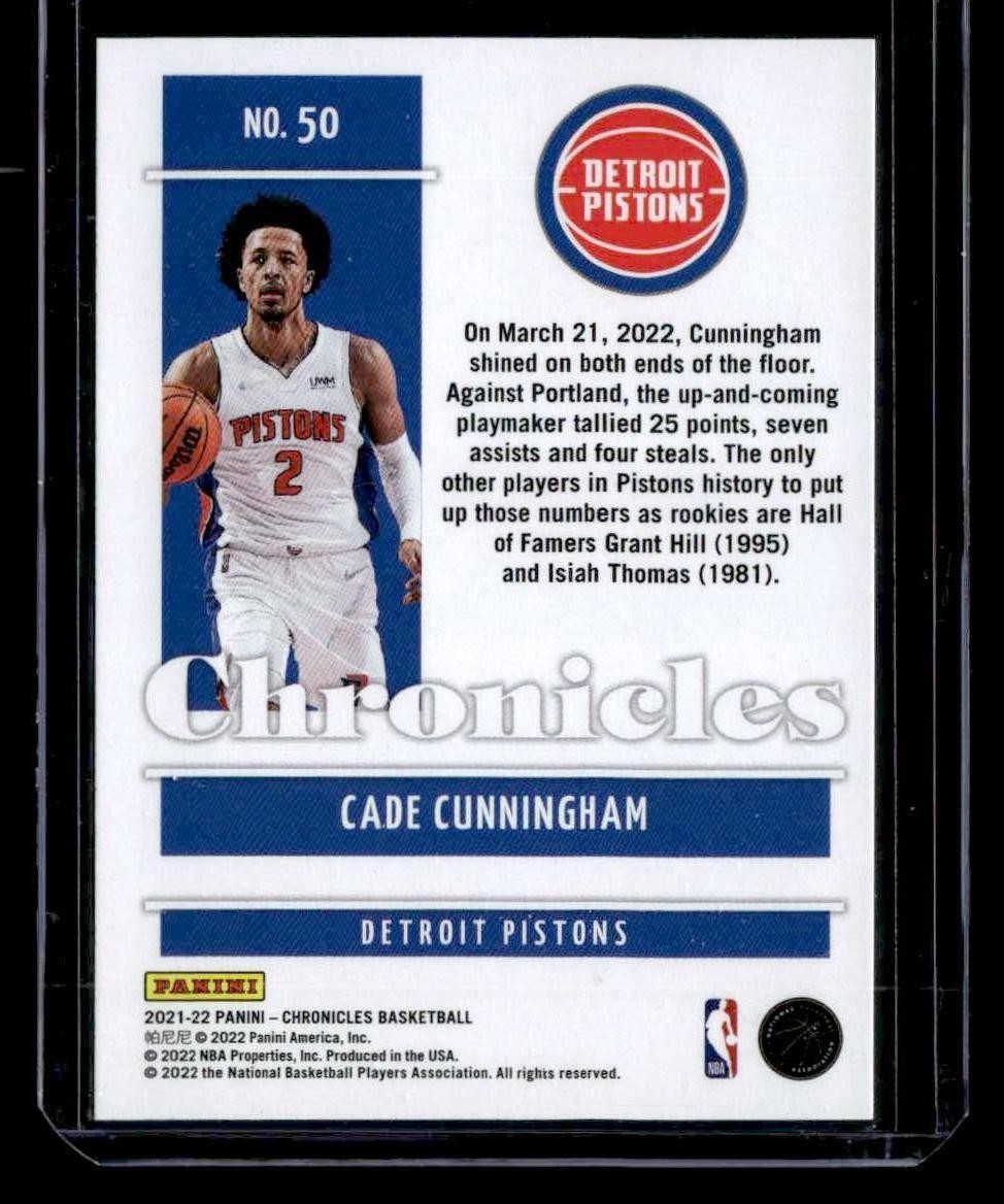 This is a nice example of a 2021-22 Panini Chronicles #50 Cade Cunningham