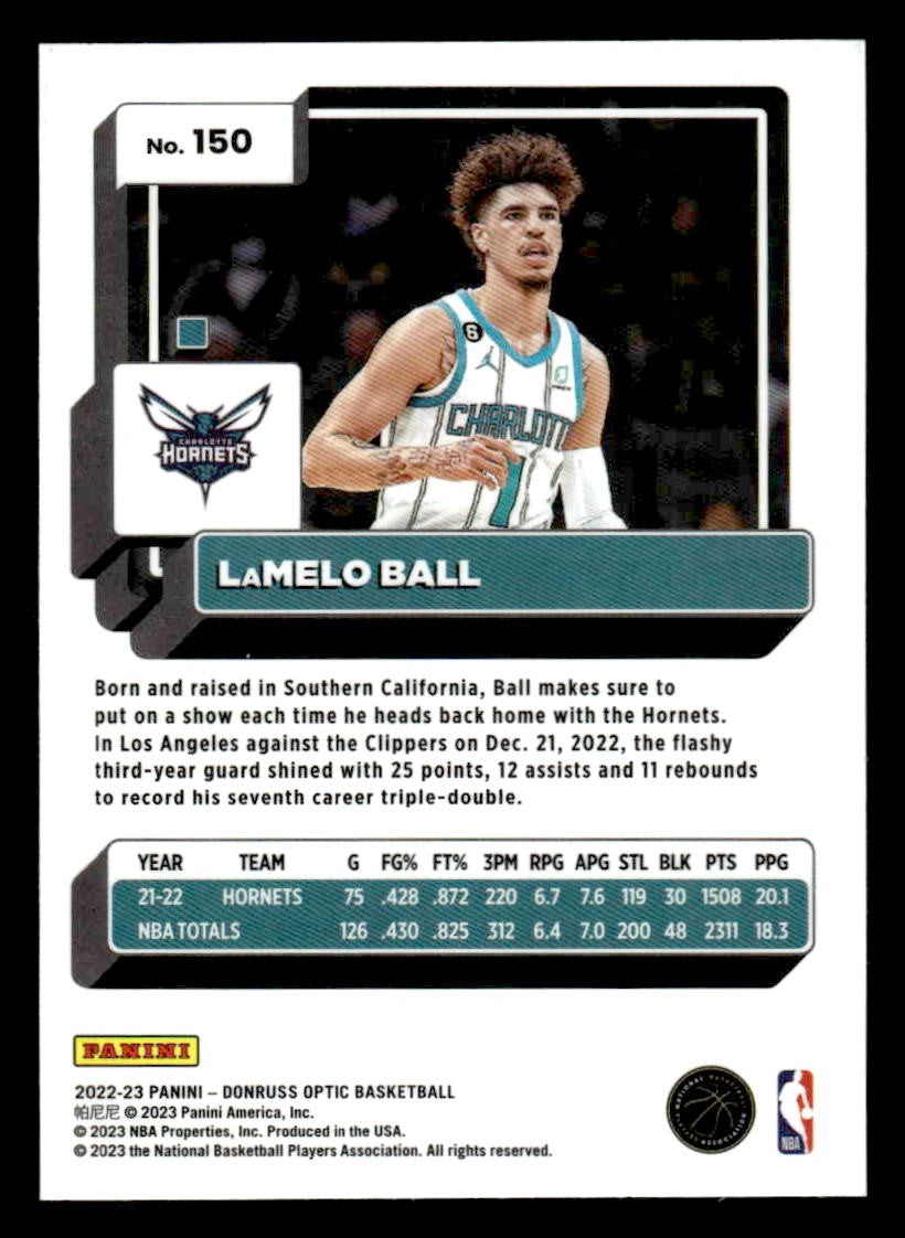 This is a nice example of a 2022-23 Donruss Optic #150 LaMelo Ball