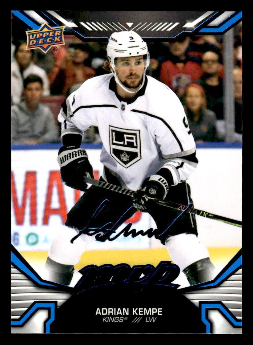 This is a nice example of a 2022-23 Upper Deck MVP #131 Adrian Kempe Blue Script