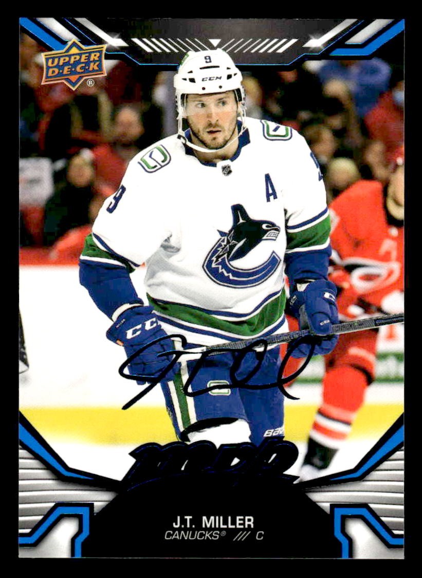 This is a nice example of a 2022-23 Upper Deck MVP #135 J.T. Miller Blue Script
