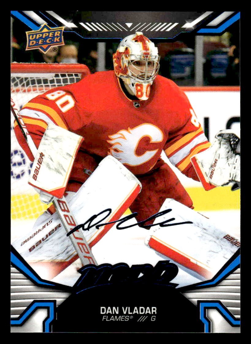 This is a nice example of a 2022-23 Upper Deck MVP #157 Dan Vladar Blue Script