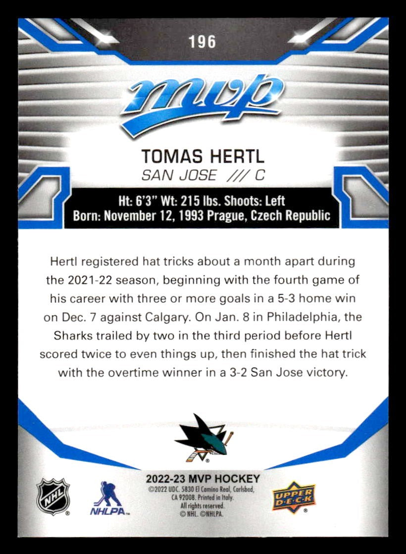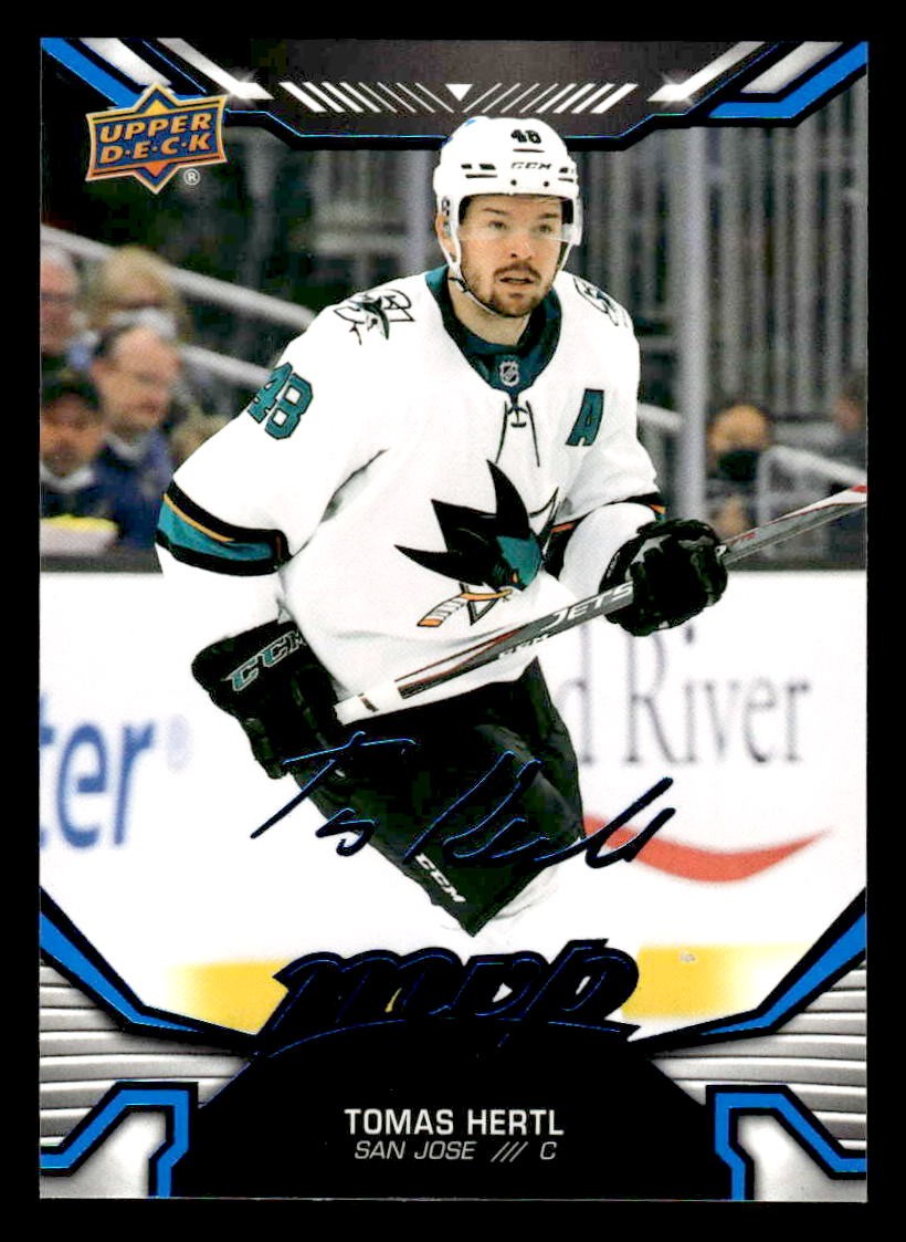 This is a nice example of a 2022-23 Upper Deck MVP #196 Tomas Hertl Blue Script