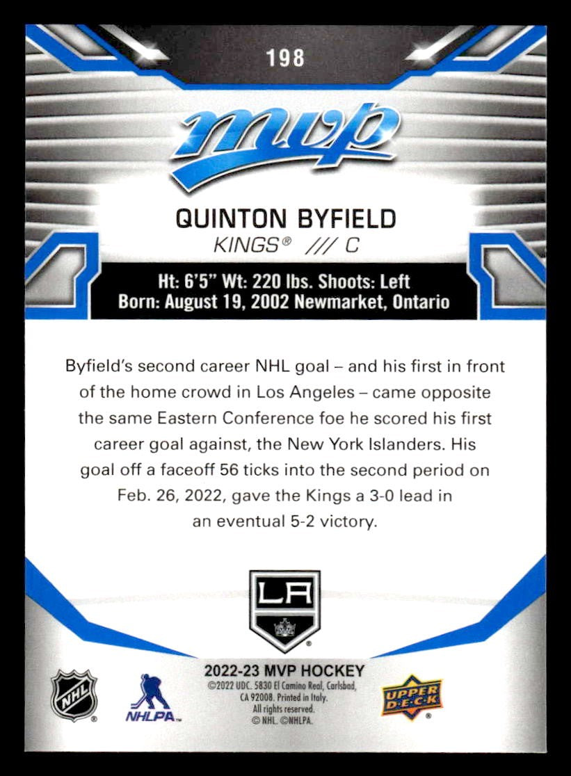 2022-23 Upper Deck MVP #198 Quinton Byfield Blue Script
