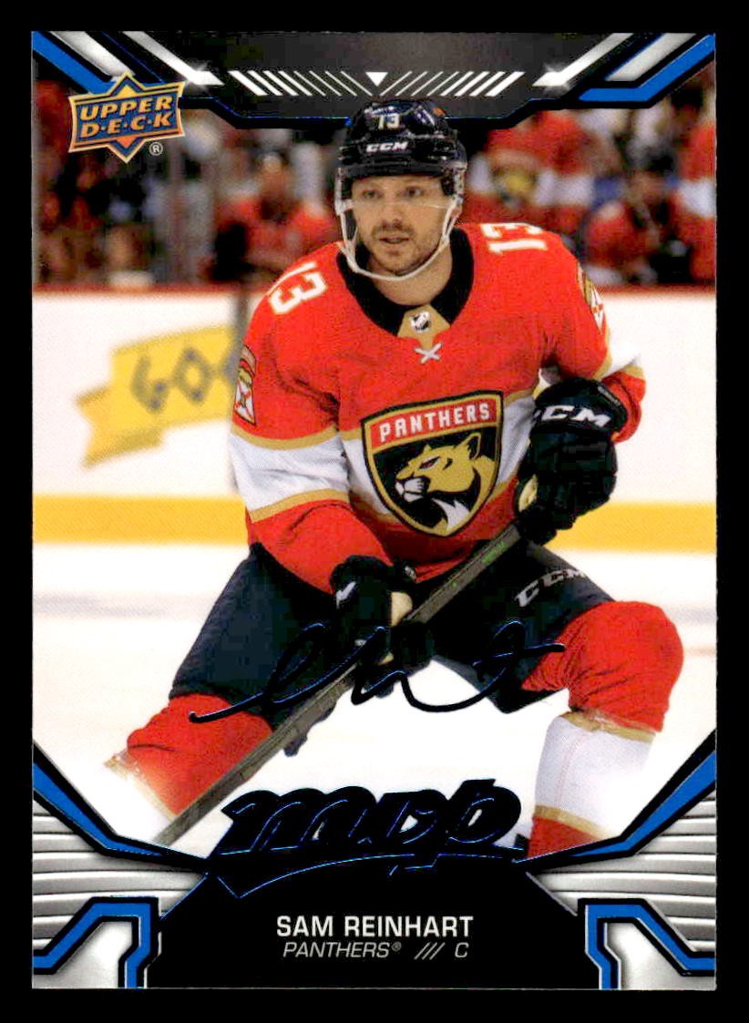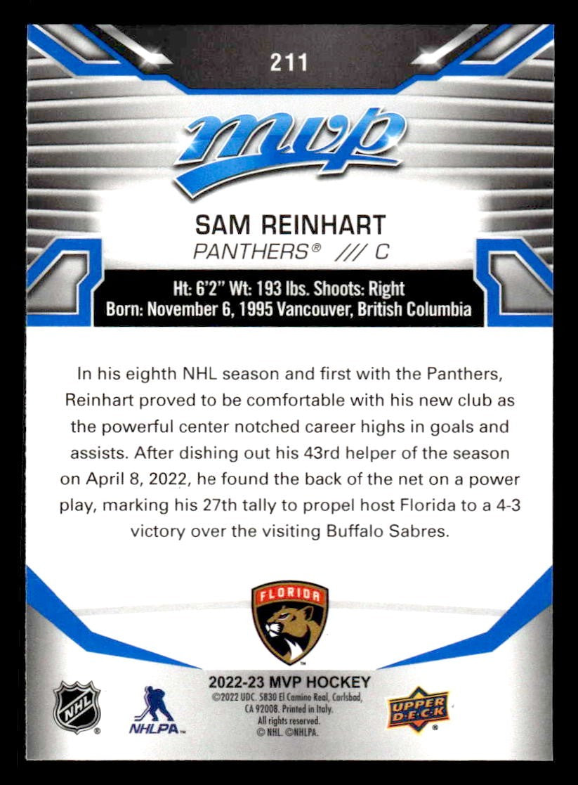 This is a nice example of a 2022-23 Upper Deck MVP #211 Sam Reinhart Blue Script