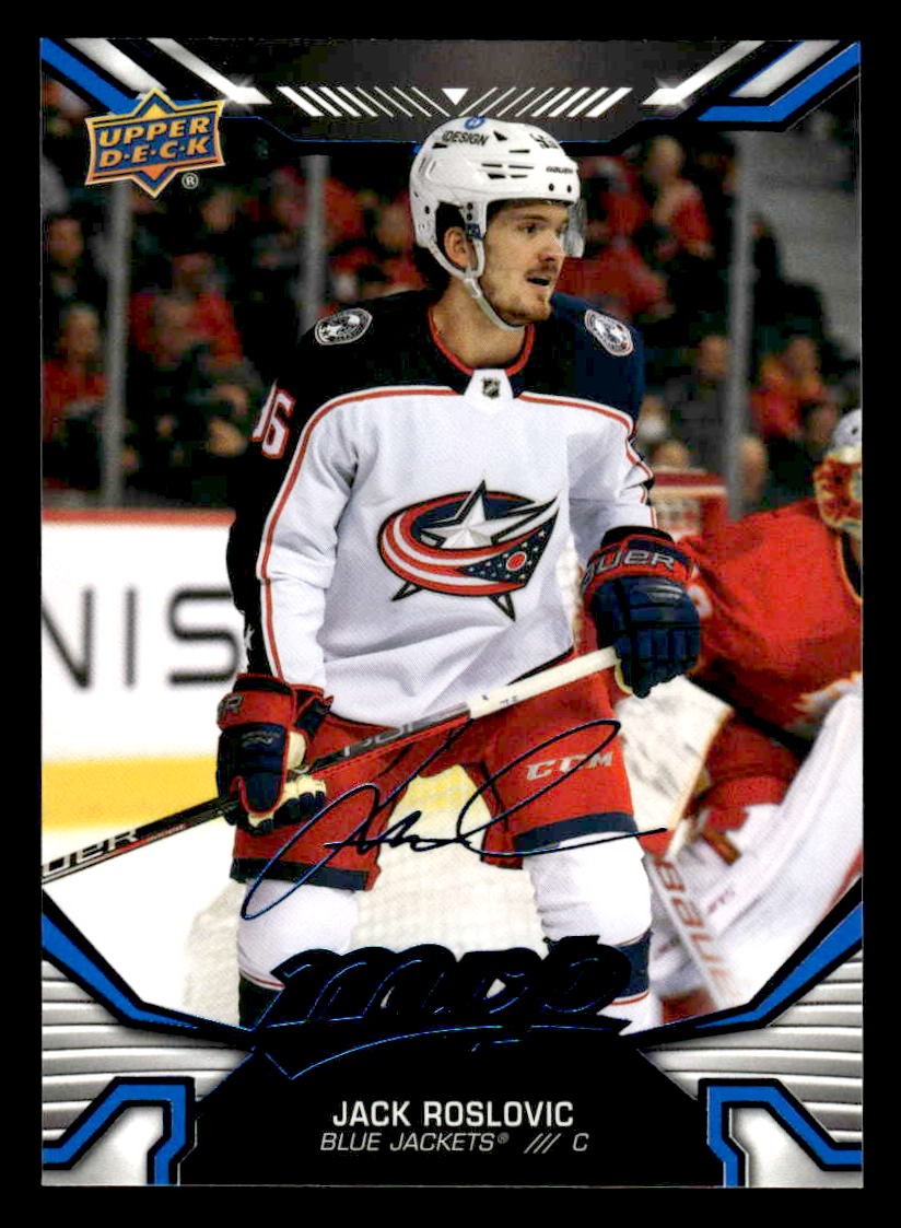 This is a nice example of a 2022-23 Upper Deck MVP #212 Jack Roslovic Blue Script