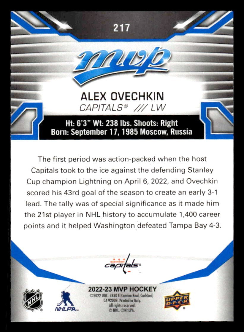 2022-23 Upper Deck MVP #217 Alex Ovechkin Blue Script