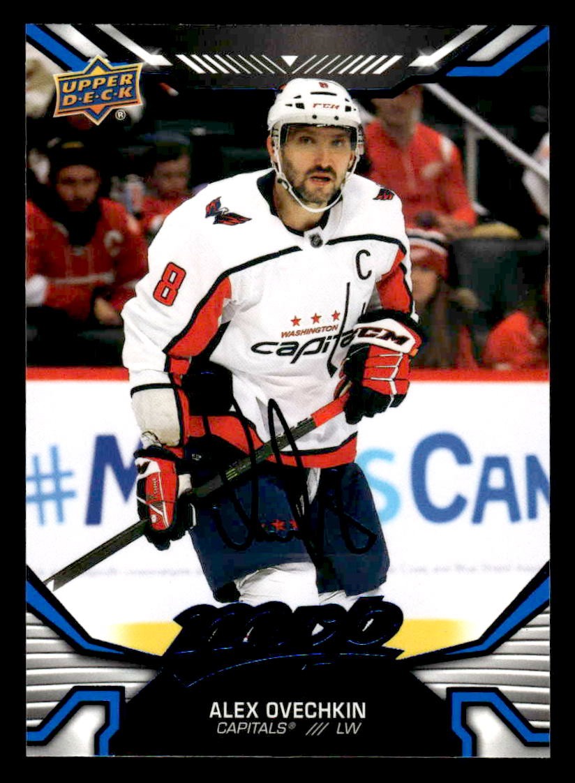 This is a nice example of a 2022-23 Upper Deck MVP #217 Alex Ovechkin Blue Script