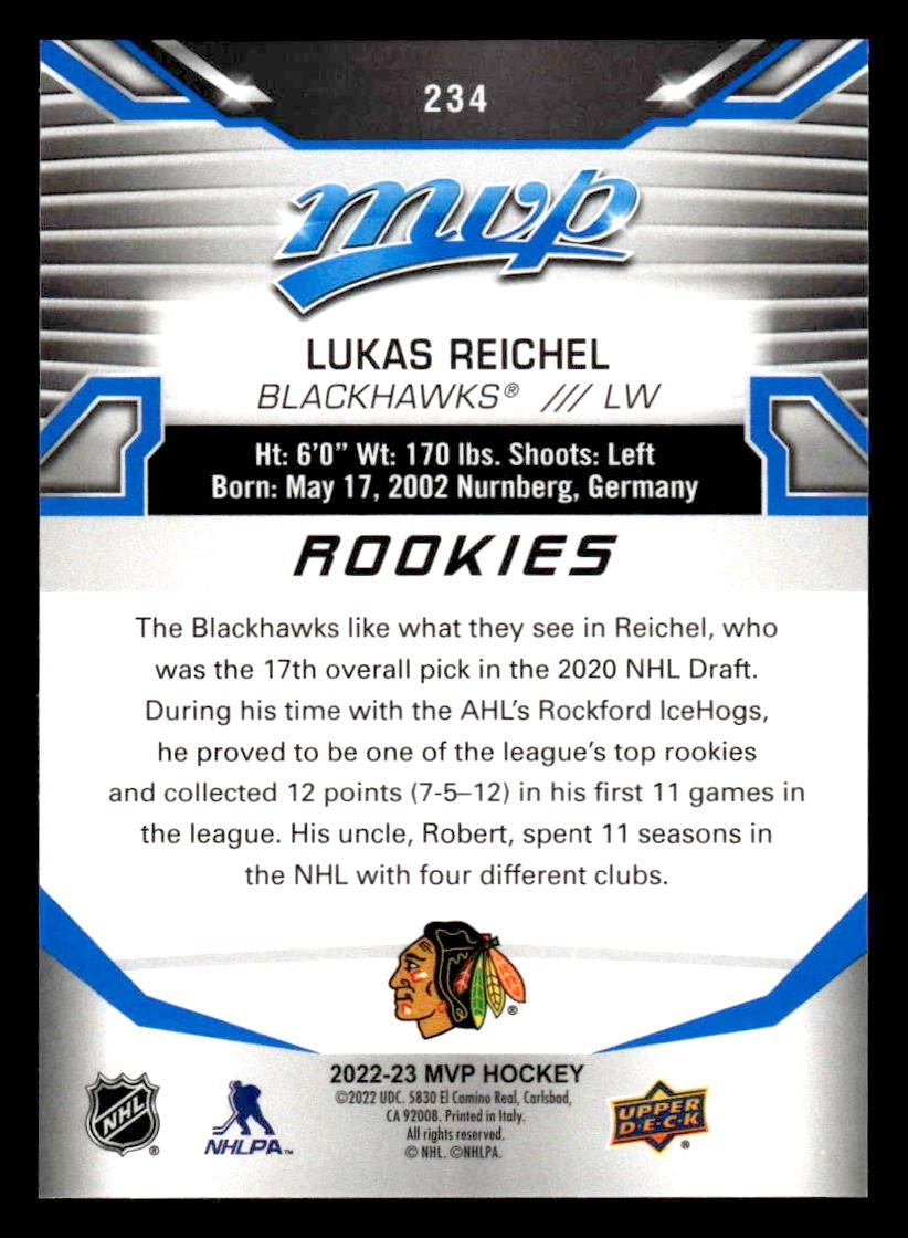 2022-23 Upper Deck MVP #234 Lukas Reichel Blue Script
