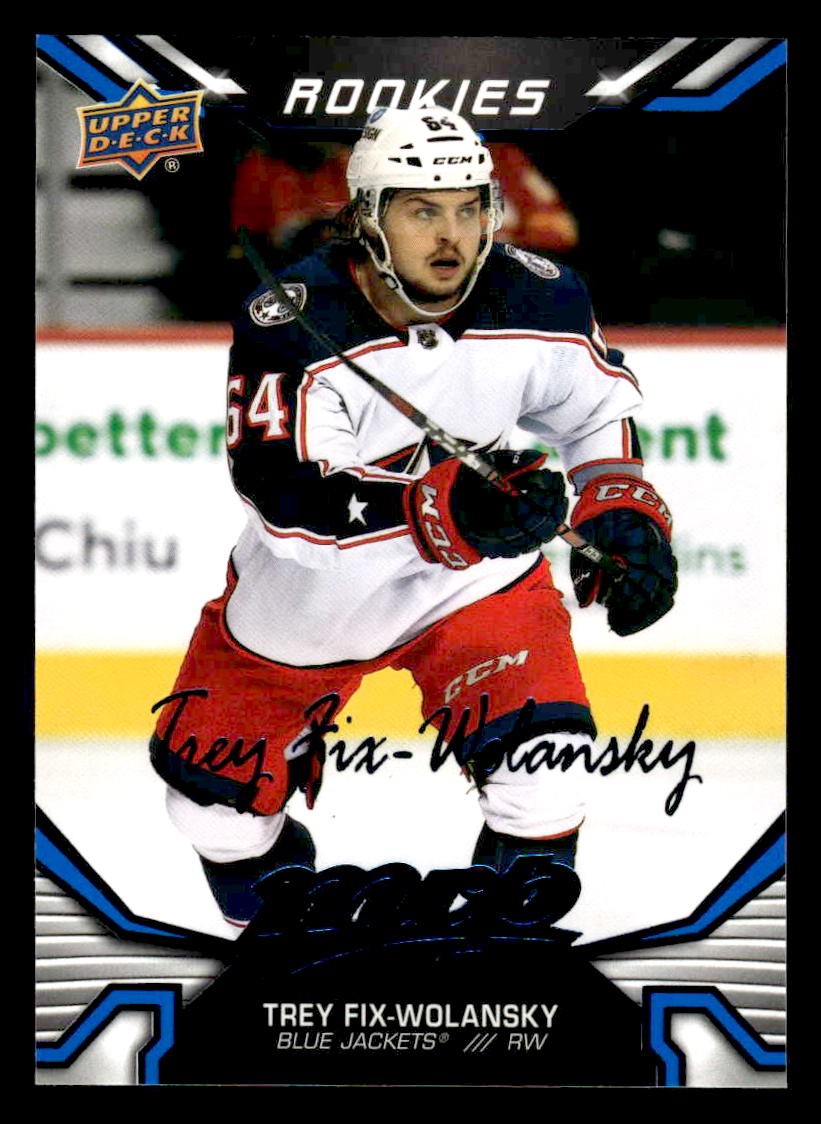 This is a nice example of a 2022-23 Upper Deck MVP #239 Trey Fix-Wolansky Blue Script