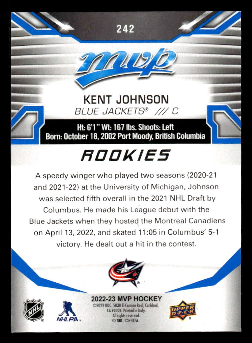2022-23 Upper Deck MVP #242 Kent Johnson Blue Script