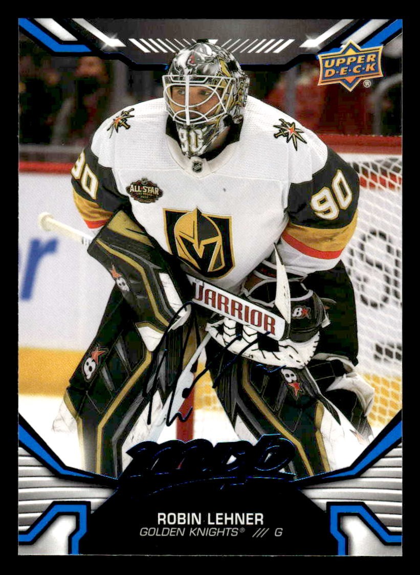This is a nice example of a 2022-23 Upper Deck MVP #69 Robin Lehner Blue Script