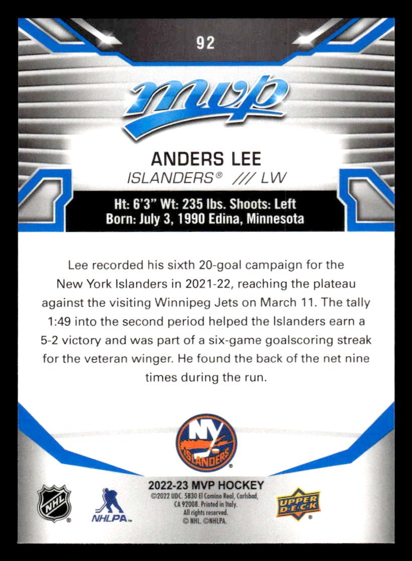 2022-23 Upper Deck MVP #92 Anders Lee Blue Script
