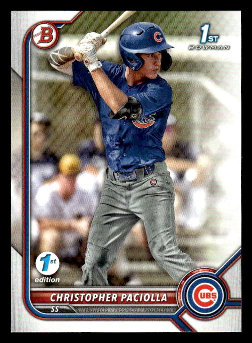 This is a nice example of a 2022 Bowman Draft 1st Edition #BD-185 Christopher Paciolla