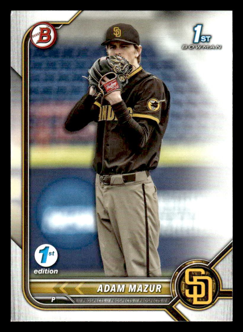 This is a nice example of a 2022 Bowman Draft 1st Edition #BD-4 Adam Mazur