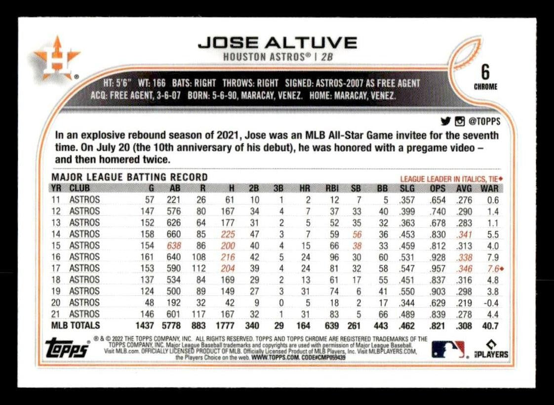 This is a nice example of a 2022 Topps Chrome Sonic #6 Jose Altuve