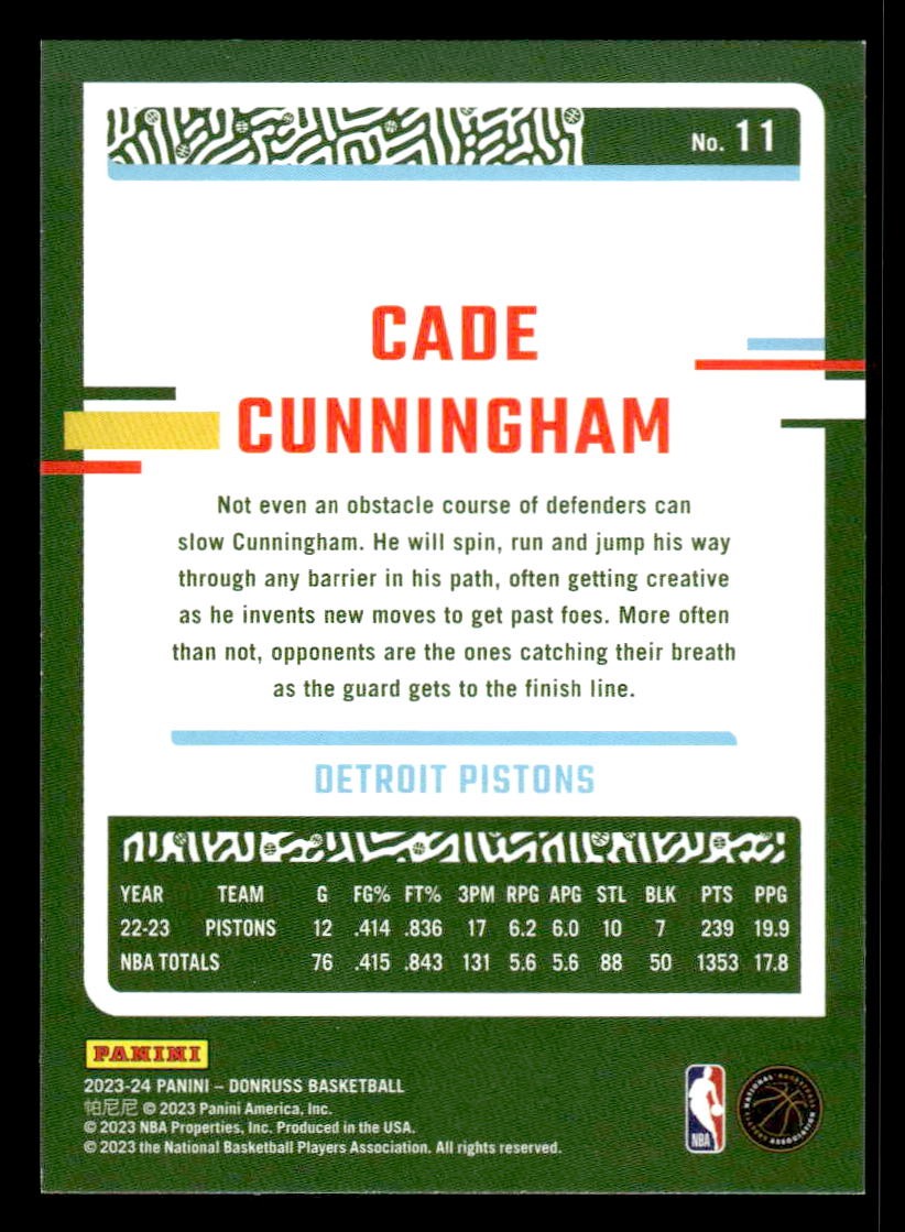 This is a nice example of a 2023-24 Donruss #11 Cade Cunningham
