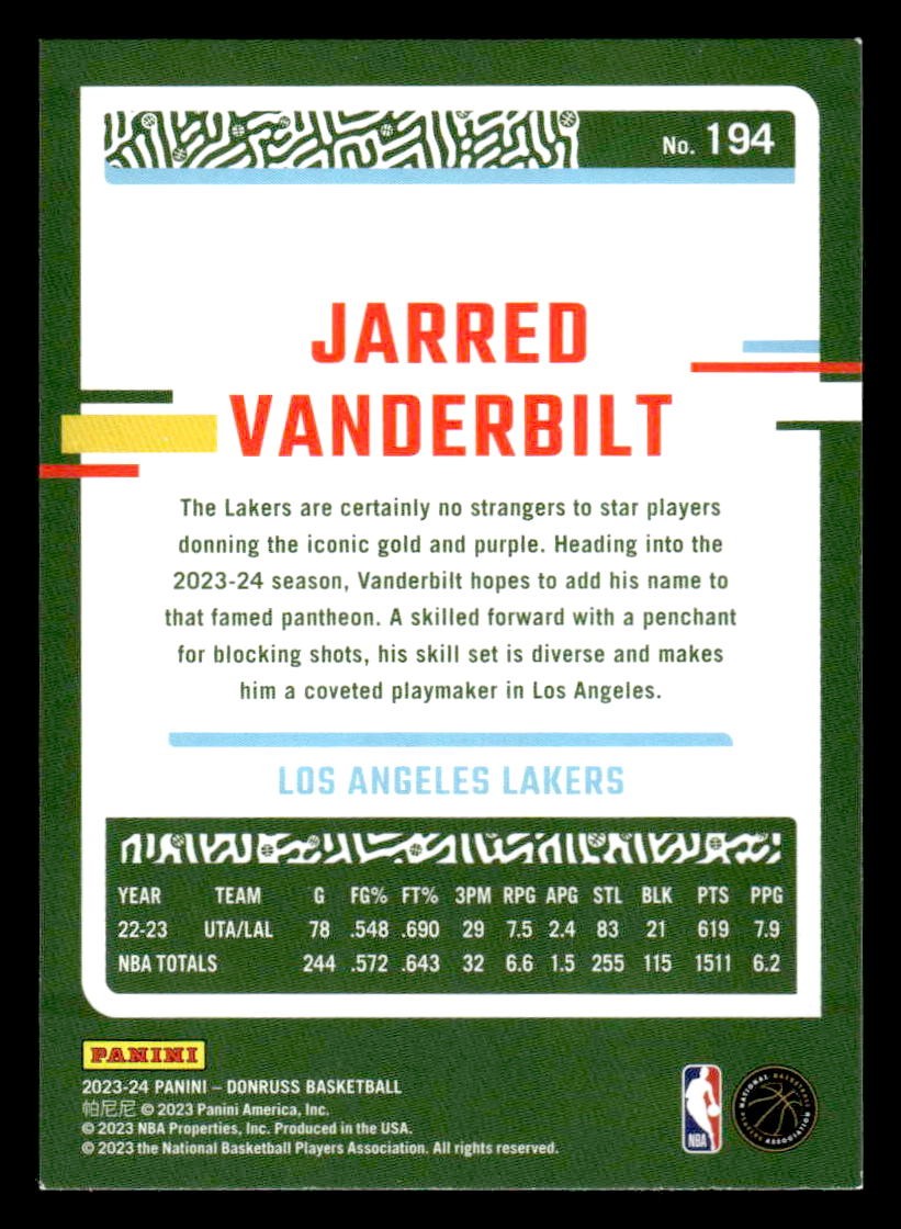 This is a nice example of a 2023-24 Donruss #194 Jarred Vanderbilt