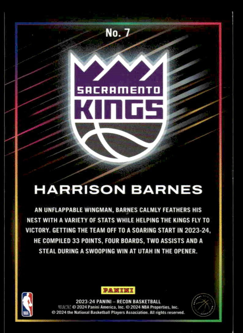 This is a nice example of a 2023-24 Panini Recon #7 Harrison Barnes Holo Bronze