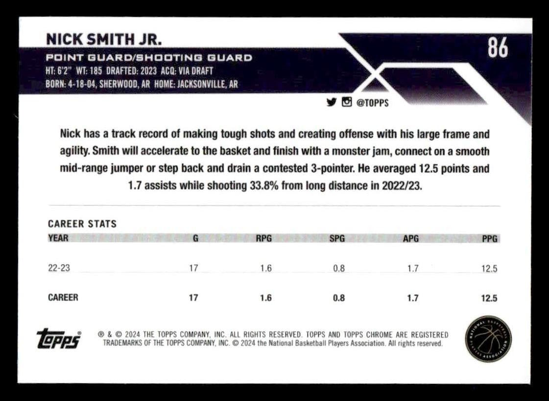2023-24 Topps Chrome #86 Nick Smith Jr.