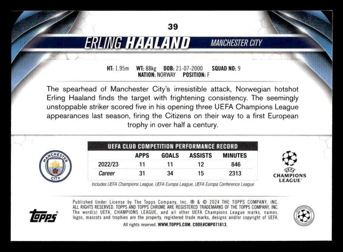 2023-24 Topps Chrome UEFA Club Competitions #39 Erling Haaland