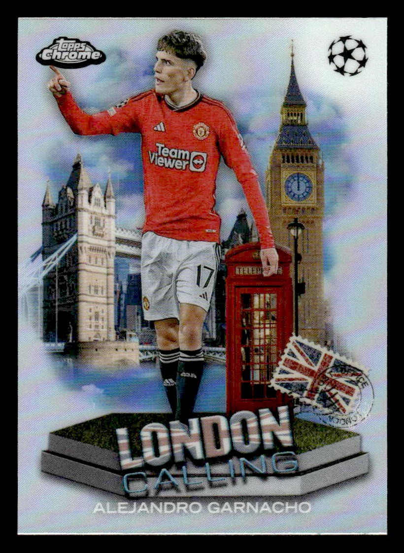 This is a nice example of a 2023-24 Topps Chrome UEFA Club Competitions #LC-9 Alejandro Garnacho London Calling