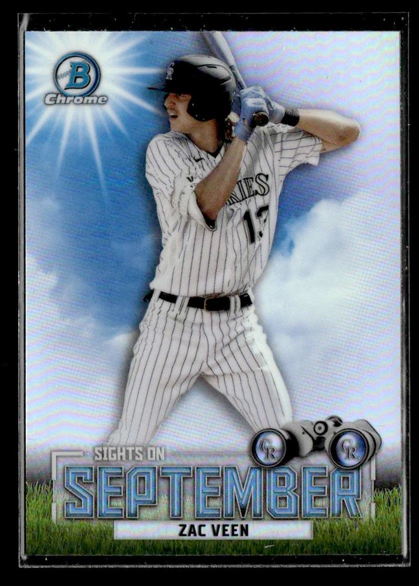 This is a nice example of a 2023 Bowman #SOS-10 Zac Veen Sights on September