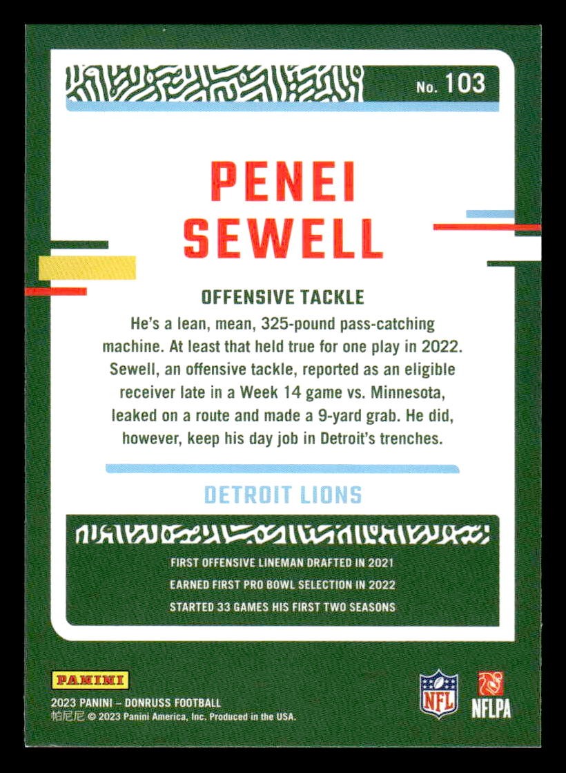 This is a nice example of a 2023 Donruss #103 Penei Sewell