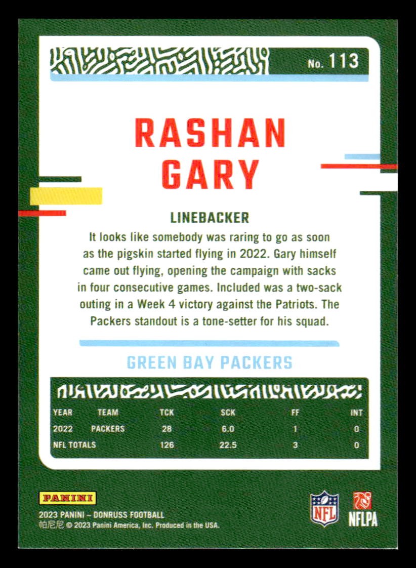 This is a nice example of a 2023 Donruss #113 Rashan Gary