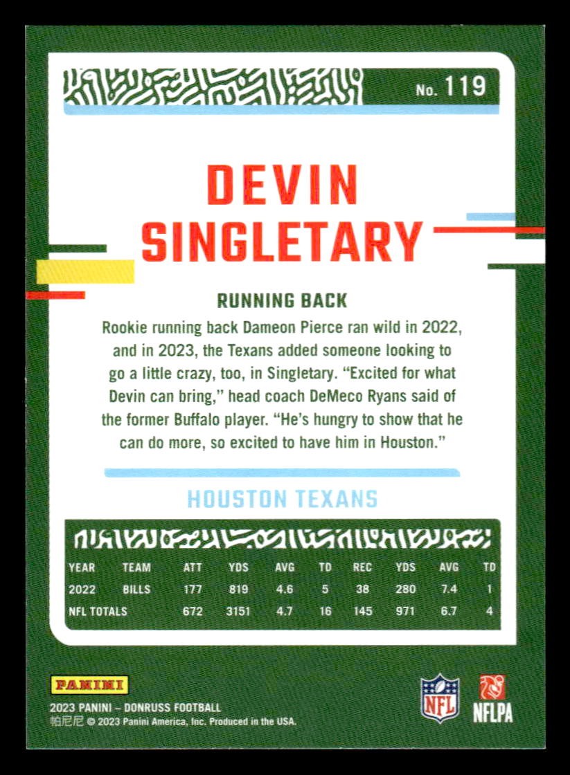 This is a nice example of a 2023 Donruss #119 Devin Singletary
