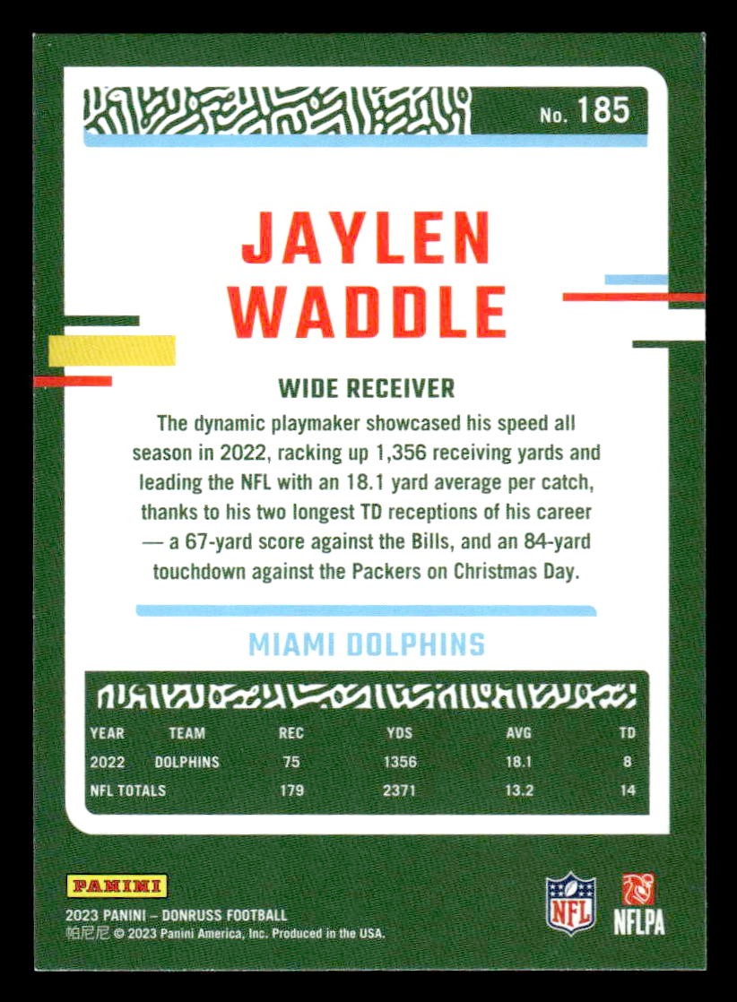 This is a nice example of a 2023 Donruss #185 Jaylen Waddle