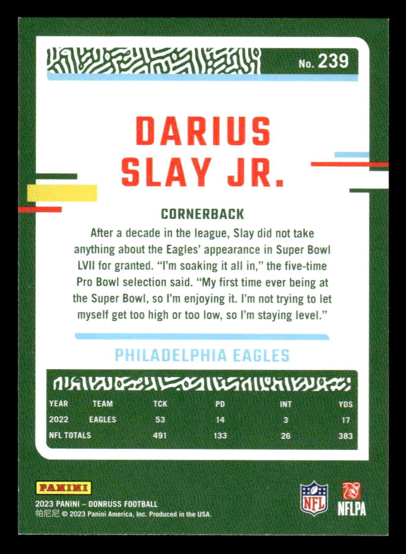This is a nice example of a 2023 Donruss #239 Darius Slay Jr.